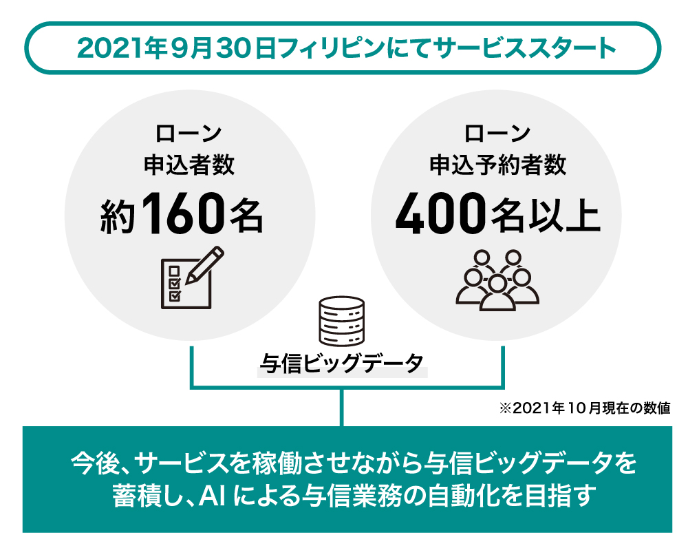 まずは、少額の融資から始めていますが、すでに弊社の売上も立ち始めています。今後、債務者の与信データが蓄積されていくことで、AIを活用した与信業務の効率化を図り、さらに金額を大きくした融資にも着手していく計画です。