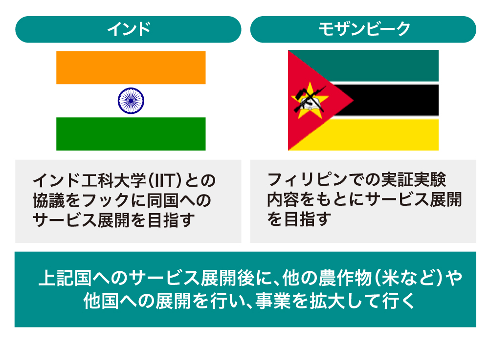 フィリピンやモザンビークで見られる農業ファイナンス、フードバリューチェーンに対するニーズは他の東南アジア、アフリカ諸国でも広く存在します。また、インドへも展開したいと考えています。本事業をこれら諸国にも横展開していくことを計画しています。