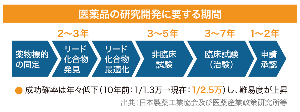 一つの薬を開発するには、長期の開発期間、巨額の費用が掛かっており、期間の短縮と開発費の削減は世界中の製薬企業にとって最重要な課題です。