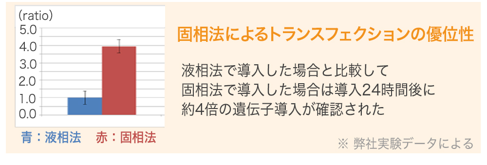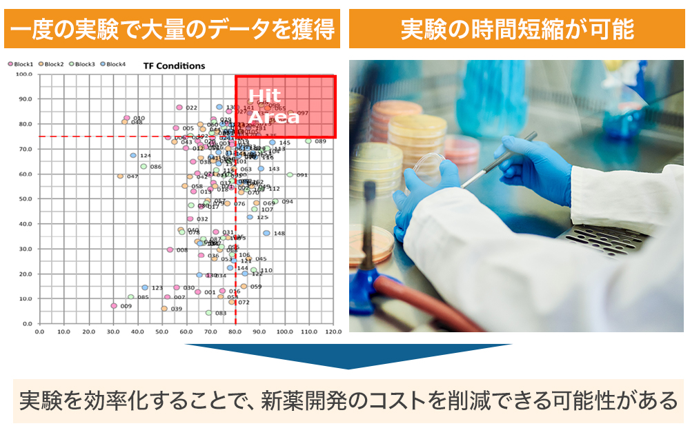 åŸæ¥ã®æ¶²çžæ³ã«ããå®éšèšç»ã§çްèãžã®æé©å°å ¥æ¡ä»¶ã詊è¡é¯èª€ã§æ¢çŽ¢ããªããå®éšçµæãåŸãããã®æéã«çŽ6ãæãèŠãããšä»®å®ãããšãåŒç€Ÿã®æ¹æ³ã§ã¯æ°é±éãã1ãæçšåºŠã§çµæãåŸãããšãã§ããŸãïŒèªç€Ÿã§ã®å®éšãåºã«ç®åºïŒã