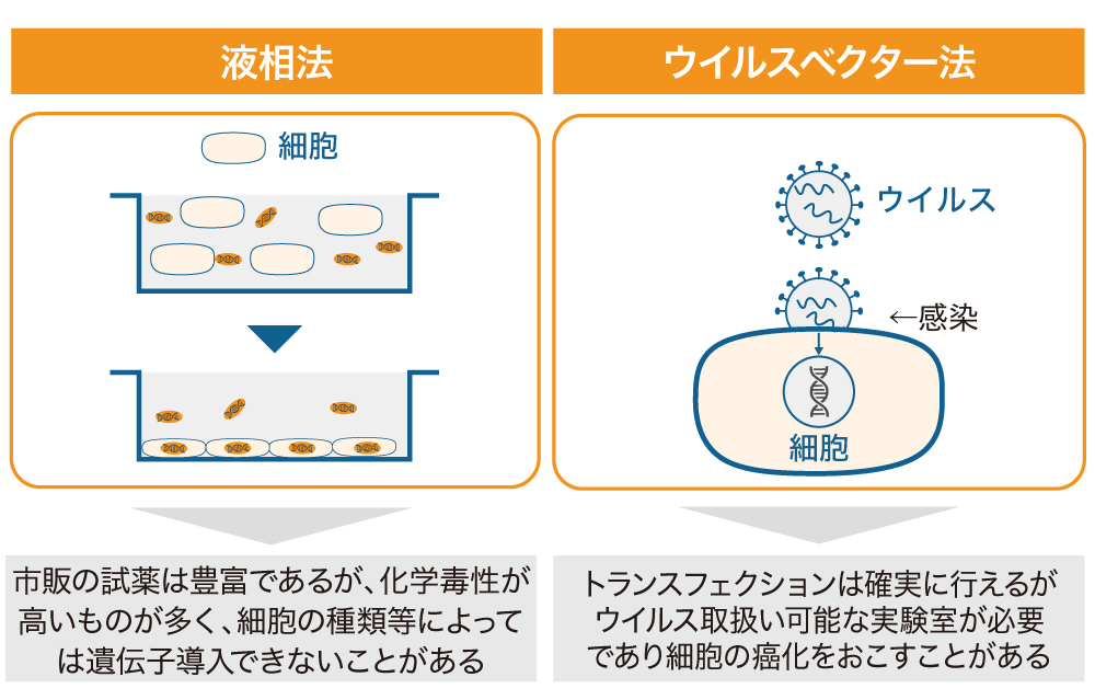 ãšã¬ã¯ãããã¬ãŒã·ã§ã³æ³ããã³ãŠã€ã«ã¹ãã¯ã¿ãŒæ³ã¯ã確å®ã«çްèå ã«æ žé žãå°å ¥ã§ããæ¹æ³ã§ããã现èãžã®è² è·ãé«ãã现èãæ»ãã§ããŸããå€ç°ãèµ·ãããªã©ã®åé¡ããããŸãããŸããäž¡ææ³ãšãææã®ç緎床ãå¿ èŠã§ãã