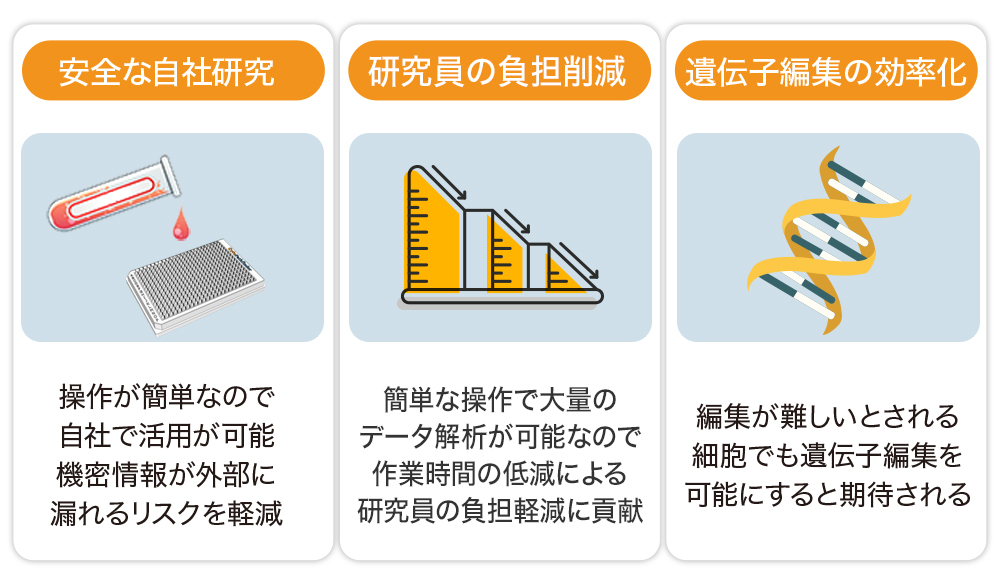 ãã®æè¡ã掻çšããããšã§ãåŸæ¥ã³ã¹ããšæéããããŠè¡ãããšãåœç¶ã ã£ããéºäŒåç·šé现èã®è£œé ãã倧ããå¹çåããããšãå¯èœãšãªããŸãã