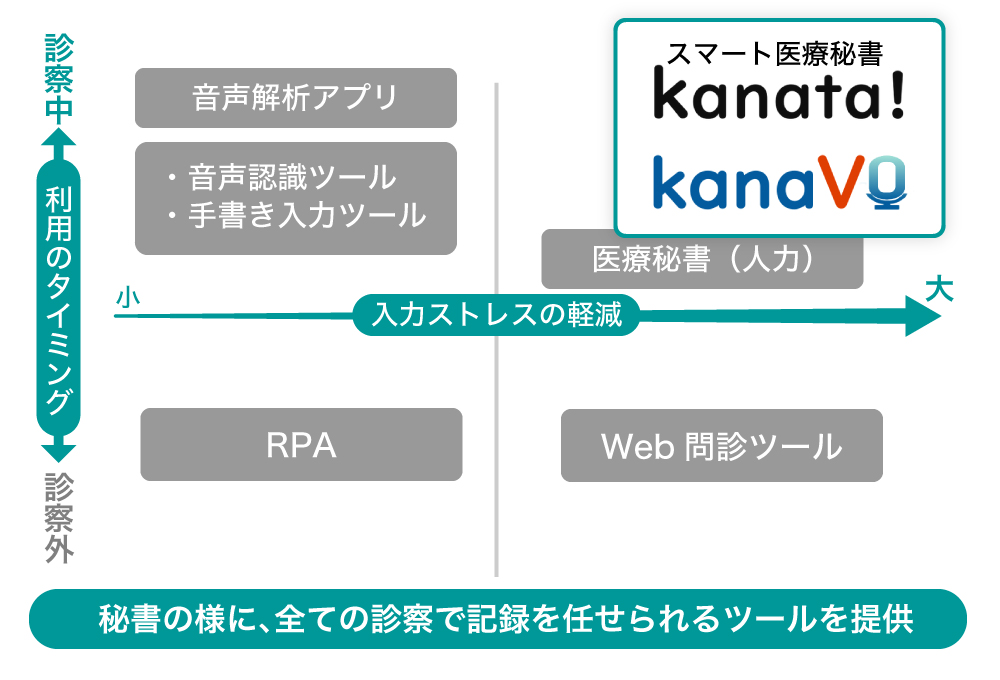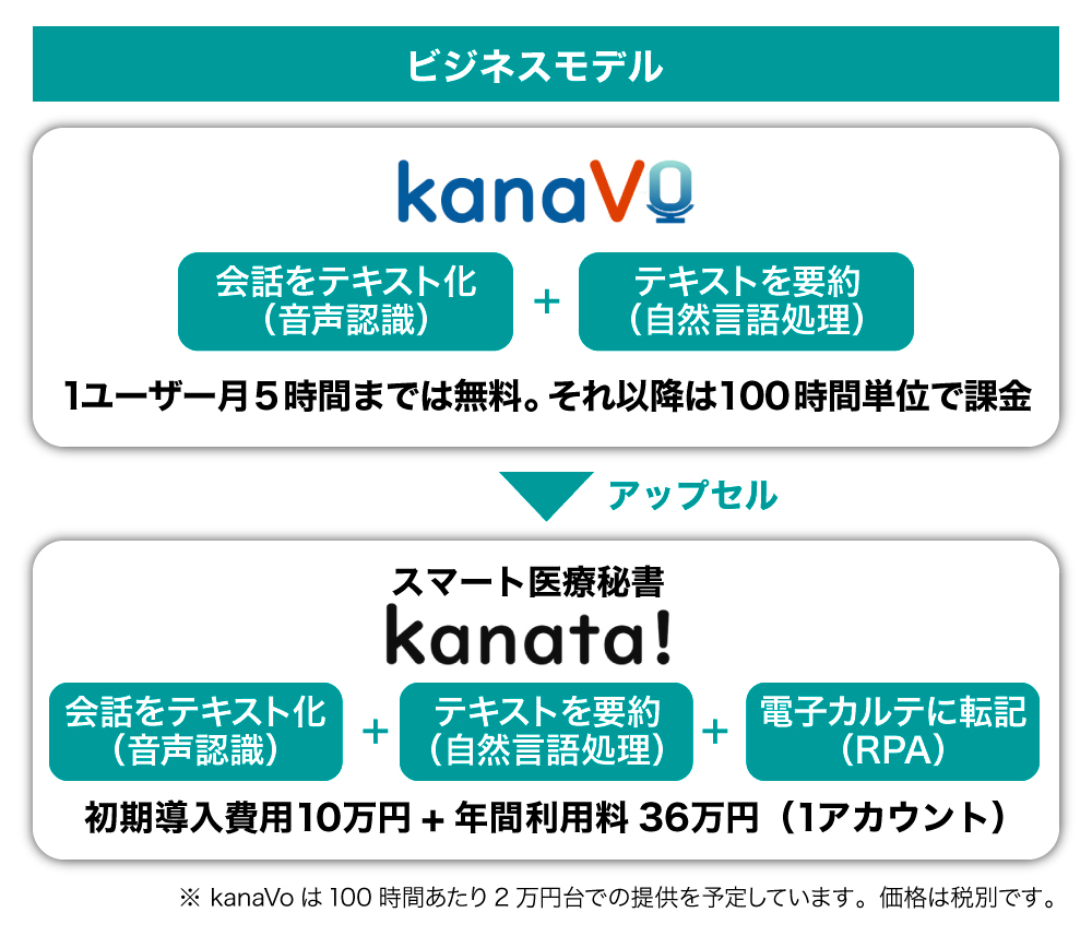 そこから、RPAでの自動入力もしたいというユーザーには、「kanaVo」を入り口としてスマート医療秘書サービス「kanata!」を知ってもらうことが可能です。