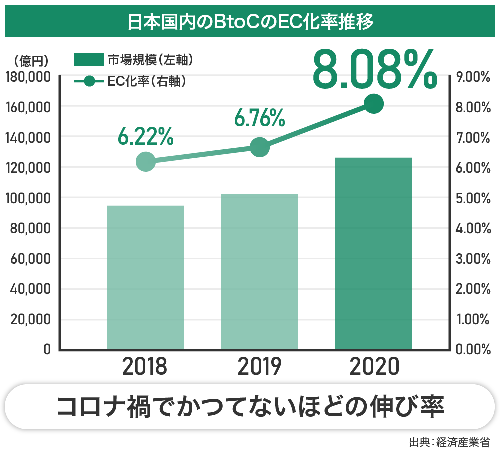 こうした中、多くの企業がEC業界に活路を求め、EC市場は拡大しました。その結果、EC事業者は競争にさらされることになり、これまでのマーケティング活動では思うような成果が得られなくなってきています。