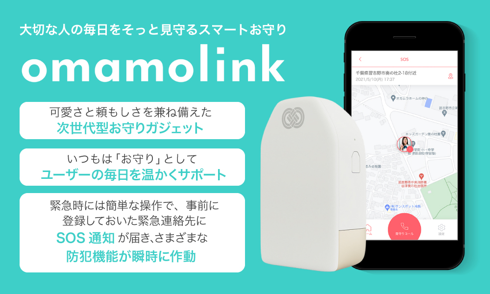 äžãäžæ§ç¯çœªã®è¢«å®³ã«ããããã«ãªã£ãå Žåã¯ããomamolinkããããŸã£ãŠããã«ãã³ãæ°åå©ãã ãã§ãé²ç¯ãã¶ãŒãèµ·åãããããšãã§ããŸããé²ç¯ãã¶ãŒèµ·ååŸã¯ããomamolinkãã«å èµããŠããSIMã«ãã£ãŠãç·æ¥é£çµ¡å ã«SOSéç¥ãšå¥³æ§ã®çŸåšå°ã®æ å ±ãéãããä»çµã¿ã§ãããomamolinkãã«ã¯å°çšã¢ããªãéçºããŠããããã®ã¢ããªãéããŠããŠãŒã¶ãŒãšä¿è·è ãããŒãããŒãªã©ç·æ¥é£çµ¡å ãšãªã人ã5人ãŸã§ãªã³ã¯ãããŸããéåžžæã¯ãã®ã¢ããªã«éç¥ãé£ã³ãæ å ±ã確èªã§ããããã«ãªã£ãŠããŸãã