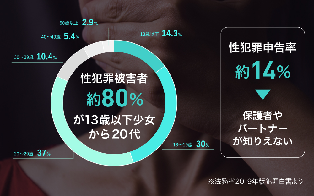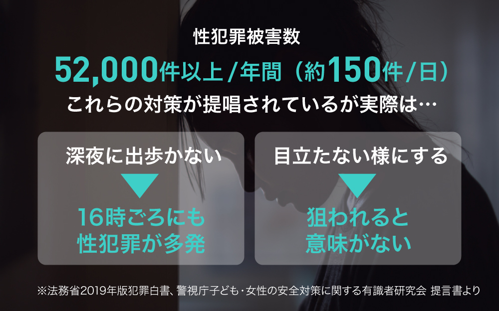 æ¥æ¬ã§ã¯ã幎é5.2äžä»¶ä»¥äžã®æ§ç¯çœªè¢«å®³ãçºçããŠããŸãïŒâ»æ³åç2019幎çç¯çœªçœæžããïŒãããã¯ãæ¯æ¥çŽ150人ã®å¥³æ§ãäœãããã®æ§ç¯çœªè¢«å®³ã«ãã£ãŠããèšç®ã«ãªããŸãã