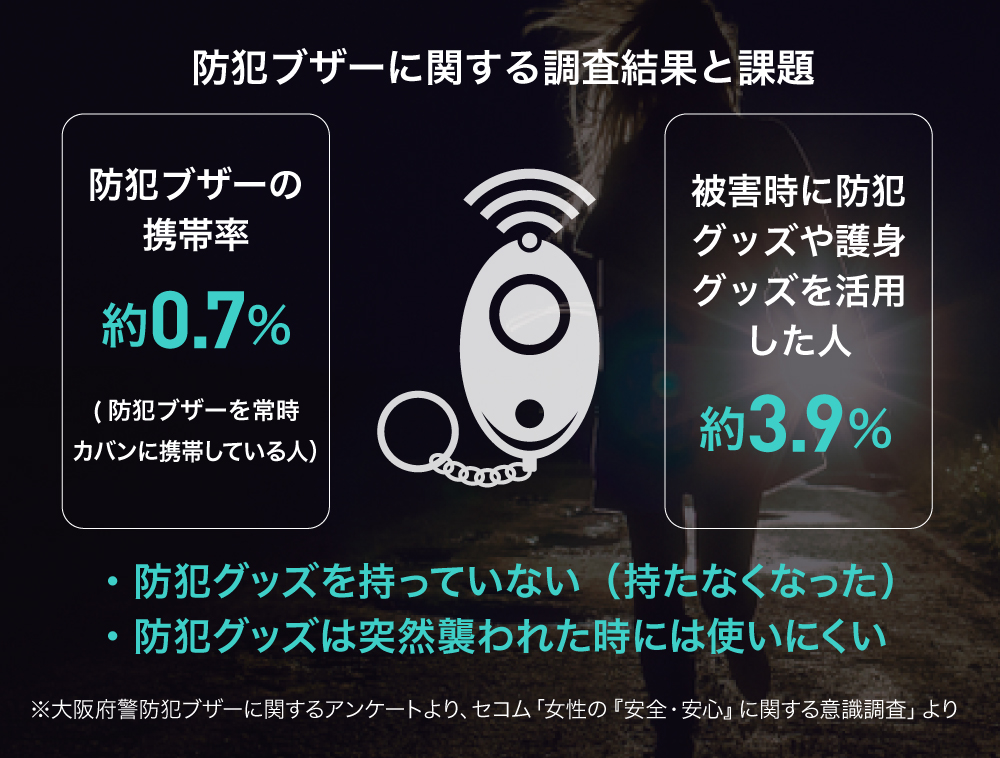 åŒç€Ÿã解決ãç®æããŠããã®ã¯ãæ§ç¯çœªã«å¯ŸããŠãå€ãã®æ¹ãäžå®ã«æããªãããç¡é²åãªç¶æ ã§ããããšã§ããæ¥æ¬ã§ã¯å¹Žéã§æšèšçŽ5äžä»¶ã®æ§ç¯çœªè¢«å®³ãçºçããŠããŸãããé²ç¯ãã¶ãŒãåžžæã«ãã³ã®å€ã«æºåž¯ããŠãã人ã¯çŽ0.7ïŒ ãšéåžžã«å°ãªããªã£ãŠããŸãã