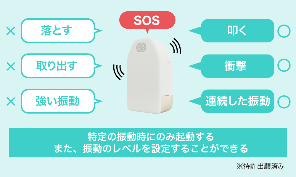 ç«¶ååªäœæ§ãšããŠã¯ããŸããç·æ¥äºæ æ€åºè£ 眮åã³ç·æ¥äºæ æ€åºæ¹æ³ãã«ã€ããŠç¬èªããã°ã©ã ãéçºããç¹èš±ãåºé¡ããŸããããomamolinkãã¯ãéåžžæã«å©ãããæ¯åã«ãã£ãŠèµ·åãããããæ¥åžžçæŽ»ã§çºçããæ¯åãšSOSã®æ¯åãåºå¥ããå¿ èŠããããŸããæ¯åã®åŒ·ããééãªã©ã埮åŠãªéããå€å¥ããããšã§ç·æ¥äºæ ãæ€åºã§ããããã°ã©ã ãéçºããæèŒããŸããããomamolinkããšãŠãŒã¶ãŒãä¿è·è ãªã©ã®èº«è¿ãªäººãçµã³ã€ããã¢ããªã«ã€ããŠããèªç€Ÿéçºã§æ§ç¯ããŠããŸãã