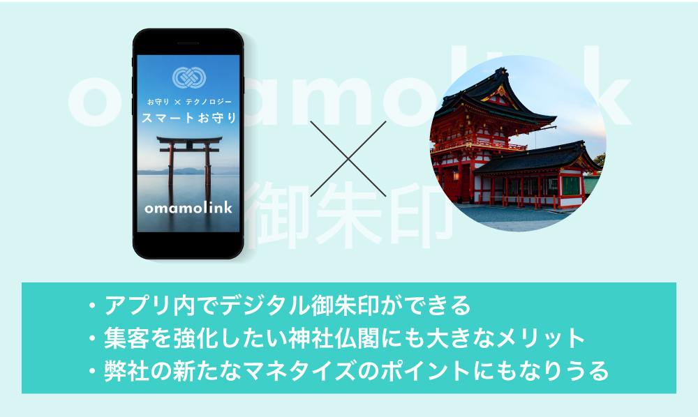 ãŸãããomamolinkãã®åºæ¬ã³ã³ã»ããã¯ããå®ããã®ãããç¥ç€Ÿä»é£ãšã飿ºããŠãããããšèããŠããŸããäŸãã°ãæ°å¹Žåãã埡æ±å°åž³ããŒã ããããŸããããomamolinkãã®ã¢ããªå ã§ããžã¿ã«åŸ¡æ±å°ãã§ããããã«ããããšã§ãé客ã匷åãããç¥ç€Ÿä»é£ã«ã倧ããªã¡ãªãããçãŸããŸããQRã³ãŒããèªã¿èŸŒãã§èª²éãã埡æ±å°ãããŠã³ããŒããããªã©ãITÃ埡æ±å°ã®ä»çµã¿ãæ§ç¯ããããšã§ãæ°ããªããã¿ã€ãºã®ãã€ã³ãã«ããªããããšèããŠããŸãã