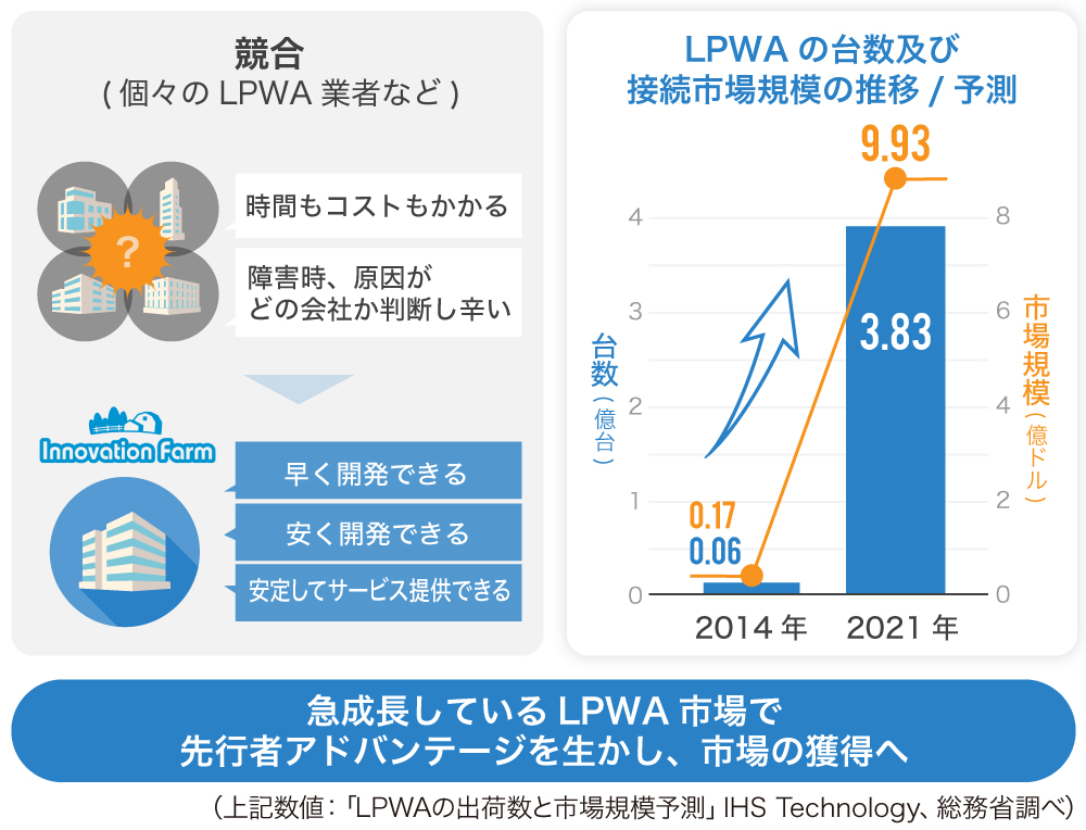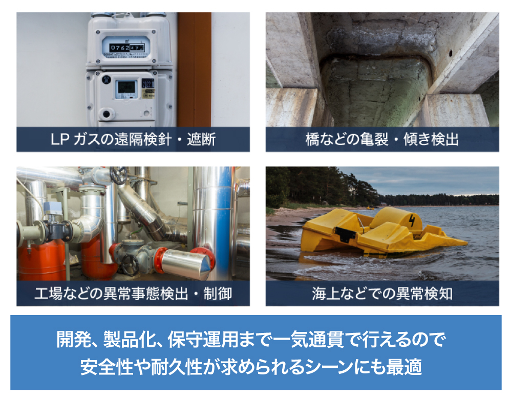 これにより、企業のLPWAのニーズへの対応や、自社展開としてのLPガスの遠隔検針や、橋や道路などの破損・劣化監視など、多種多様なサービスに応用展開することができます。
