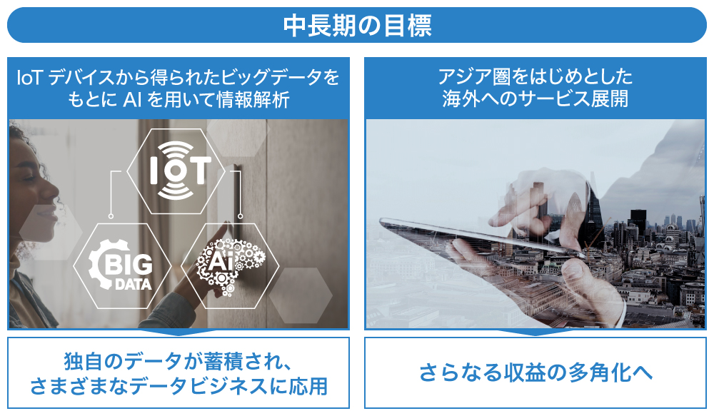 また、アジア圏を始めとした海外へのサービス展開も目指すことで、さらなる、収益の多角化を目指していきたいと考えています。
