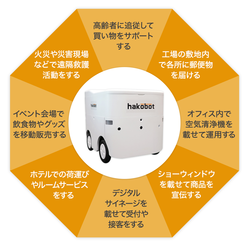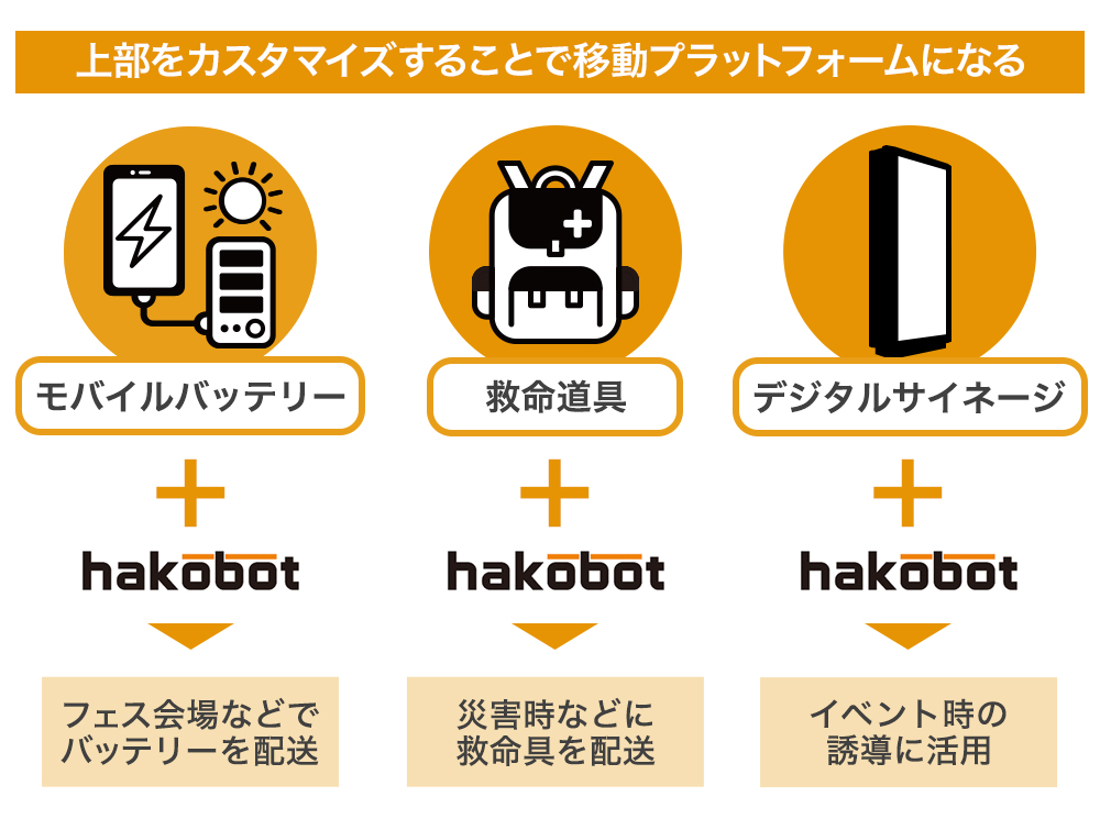 上記はあくまで一例です。「Hakobase」の用途はただ荷物を運ぶだけに限定しておらず、既存のデバイスと組み合わせることで、さまざまな業界で活用できると考えています。