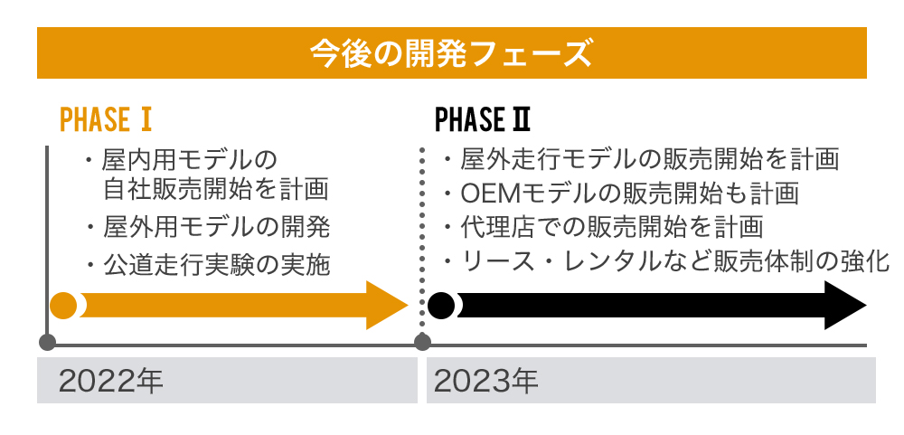 屋内外で利用可能なフェーズ2のプロダクト開発を、年度内での開発完了および公道での実証実験を目指してスタートさせる計画です。