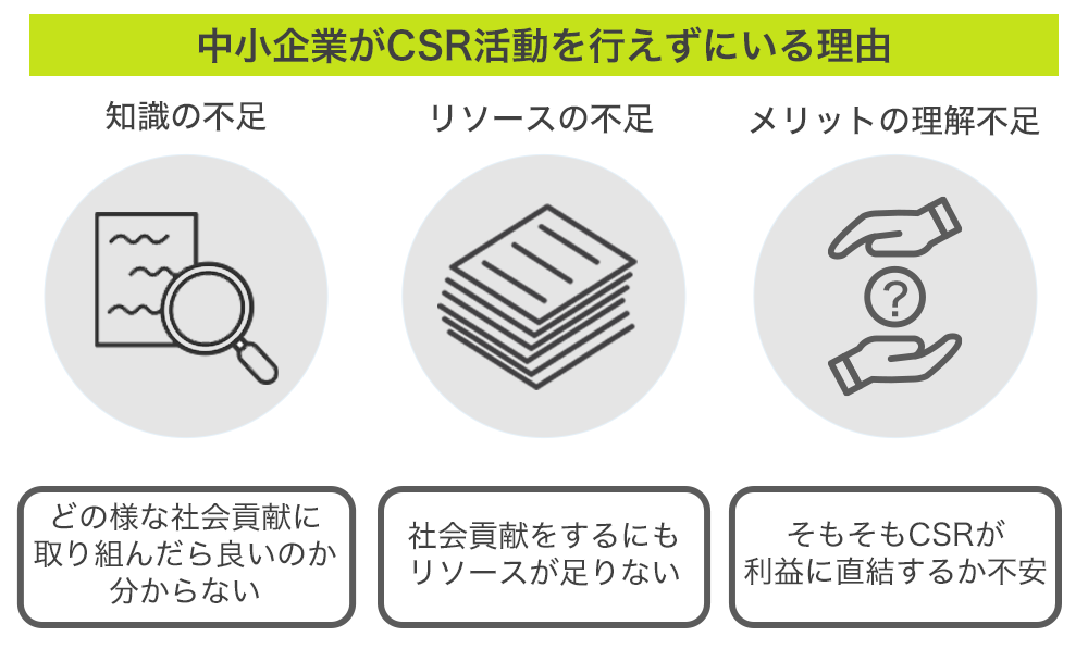 このように、CSRやSDGsへの取り組みを、どこで、どのように行うのかといった知識や機会、そして取り組みに割く人員や資金といったリソースが中小企業には不足しがちです。