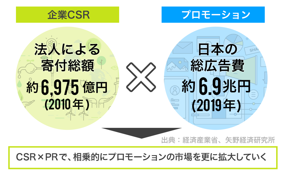 企業にとってCSRへの真摯な取り組みは、単に社会貢献という意味だけではなく、ESG投資(「環境・社会・企業統治」に対する企業の取り組みを重視した投資)やエシカル消費(人・社会・地域・環境に配慮した消費行動)という言葉でも表される様に重要なブランディングの役割をも果たしております。この様にCSRとPRを掛け合わせた社会性の高いプロモーションの市場ニーズは日々拡大しています。