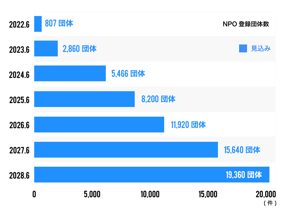今後は、NPO団体の掲載数を2022年で約2,000件、2026年に約10,000件を目指し、より多くのタイアップ件数の増加を目指していきます。