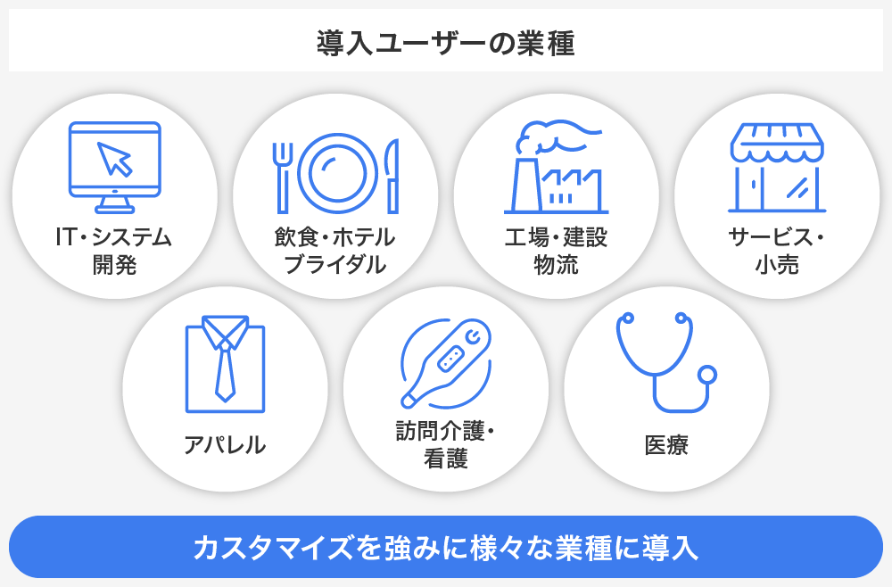 こうした実績は、弊社を支えるカスタマイズ対応力が海運業の会計・営業システムに限らず様々な分野にも通用するという自信につながっています。10名~1,000名規模の企業まで様々な就業規則に合った機能を開発してきたノウハウによって、競合が多いクラウドサービスの中でも選ばれる存在を目指していきます。