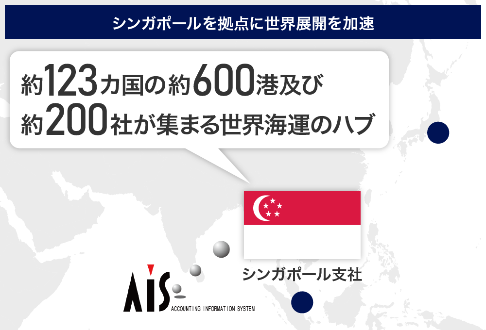 さらに、弊社スケールにおいて欠かせない海外展開においては、既に8年前よりシンガポールに拠点を構えています。シンガポールは海運の中心地として世界中の海運会社が進出しており、弊社が得意とする細かなニーズに応える日本的なシステムを売りにグローバル化を目指します。
