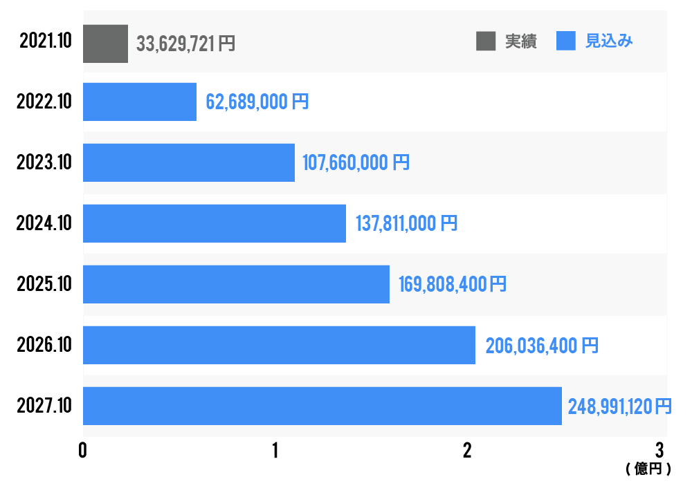 下記のKPIの推移については、事業計画書(売上高等推移予想)の内容を反映しております。なお、KPIの推移については、発行者の予測であり、必ずしも保証されるものではありません。事業計画書につきましては契約締結前交付書面の別紙1-1・別紙1-2をご確認ください。
