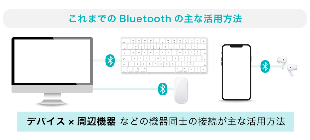 しかし、これまでBluetoothの利用はパソコンやスマホなどのデバイスと、キーボードなどの周辺機器との接続がほとんどです。