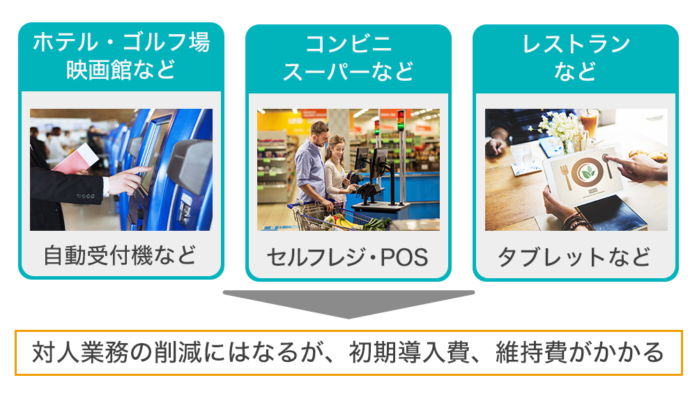 しかし、こうしたスマホやIT技術の導入には端末(自動受付機やセルフレジなど)の設置費用や、システム(アプリなど)の構築と運用費用など、莫大なコストがかかるため、全ての企業が簡単に導入できるものではありません。