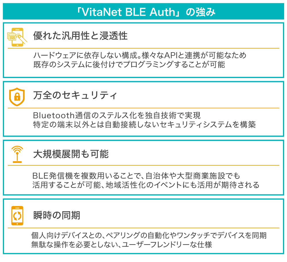 「VitaNet BLE Auth」のパートナー販売を拡大する計画です。