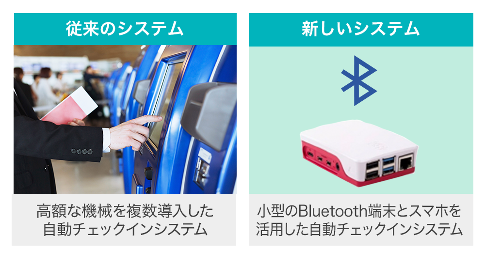 そうすることで、アプリをインストールしたお客様が店舗に来店し、スマホとBluetooth端末が自動接続するだけで、本人確認が完了します。従来のようなスマホ側のGPSやビーコン(低消費電力の近距離無線技術を利用した位置特定技術)の利用も不要です。