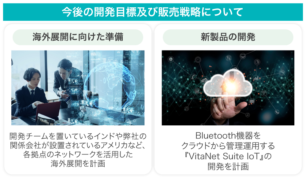 「VitaNet BLE Auth」のパートナー販売に加えて、「VitaNet Suite」のウェブでの直販モデルを開始して、国境の制限のない販売体制を確立する計画です。