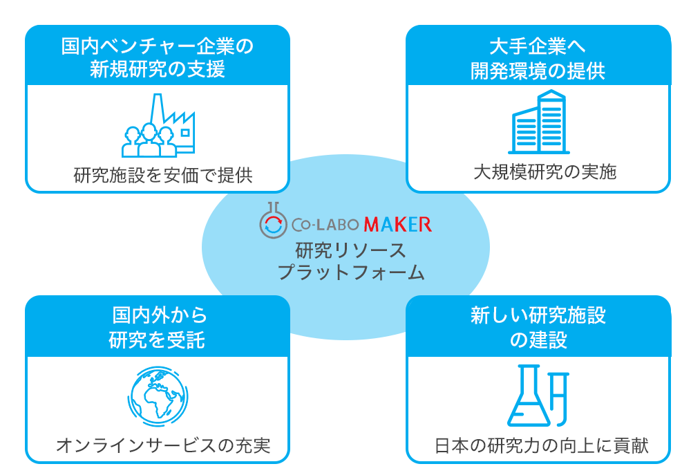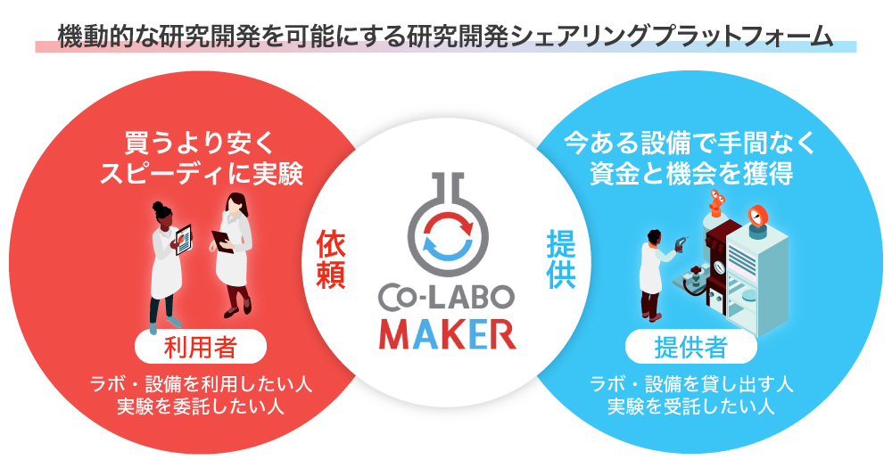 2017幎4æããCo-LABO MAKERããç«ã¡äžããæ°ããªç ç©¶éçºãšã³ã·ã¹ãã ã圢æãã¹ããç ç©¶éçºãªãœãŒã¹ã®ã·ã§ã¢ãªã³ã°ãµãŒãã¹ãå±éäž