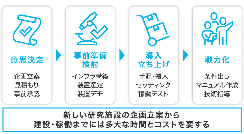 äŸãã°ããã€ãªé¢é£ã®ç ç©¶éçºãæ°èŠã§è¡ãéãéåžžãªãç°å¢ãæŽããã®ã«æ°åäžåã®è³éãšãå幎ã»ã©ã®æéãããããã®ã§ãããCo-LABO MAKERãã§ã¯ãæé¡çŽ30äžåããã€å³æå©çšãã§ããäºäŸããããŸãïŒèªç€Ÿã§èª¿æ»ããçµæã«ããïŒã