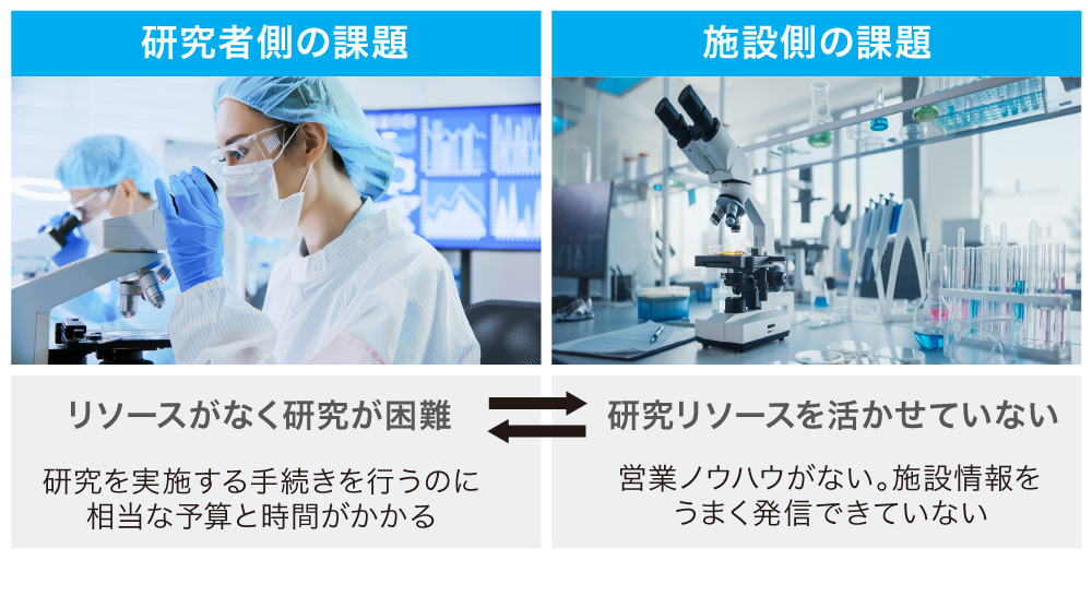 åŒç€Ÿã¯ãèšåãæè¡ãäžè¶³ããŠããããã«ç ç©¶éçºãæšé²ã§ããŠããªãç ç©¶è ãæ³äººïŒä»¥äžãå©çšè ïŒãšãèšåã»æè¡ã¯ããã®ã«è³éãããŒã¿ïŒãµã³ãã«ïŒããããªãã©ãïŒä»¥äžãæäŸè ïŒãšããããã³ã°ããååŒãµããŒãããããšã§åè¿°ãã課é¡ã®è§£æ±ºã«æã¿ãŸãã