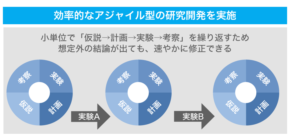 æŽã«ã¯ãå®éšãå§ããããã«å¿ èŠãªè³éãšæéãæ¿æžããããšã§ãã¢ãžã£ã€ã«ç ç©¶éçºãšãèšãããããªæ°ããç ç©¶éçºã®åœ¢ãå®çŸããŸãã