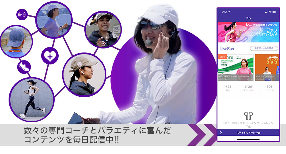 「ライブラン」では、多彩なコーチ陣より、健康に役立つ情報をコンテンツに盛り込んで配信を行なっています。