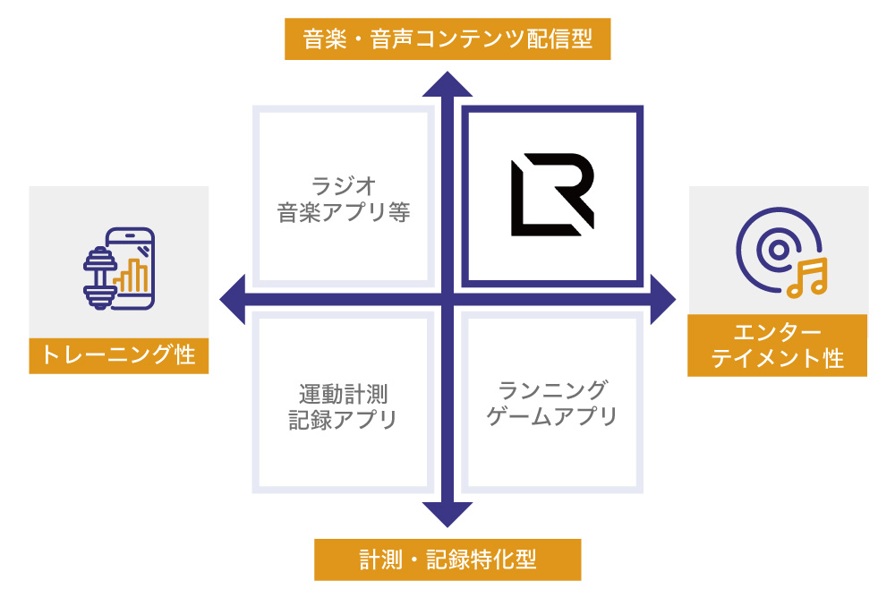 多くのバーチャルフィットネスの新興企業はビデオコンテンツに焦点を当てていますが、「ライブラン」のオーディオコンテンツにおける独自の位置付けになり「ブルー・オーシャン」とも言えます。