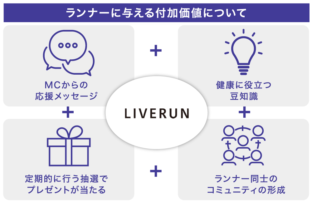 「ライブラン」が世の中に広がることで、人々は運動を前向きに習慣化することができ、日本人の健康寿命の引き上げに少しでも貢献できることを目指しています。