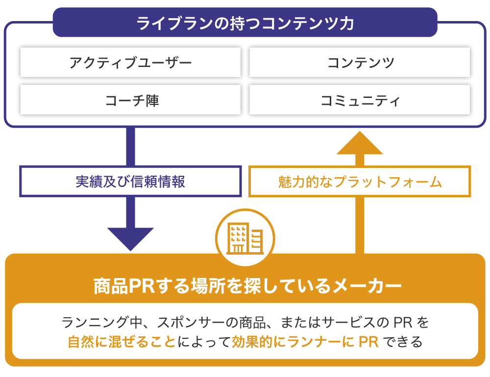 弊社では、スポンサー企業との関係性をとても重要視しています。前述したように、「ライブラン」のコンテンツの中で製品やサービスを紹介することで、後にSNSなどで普及していく効果は企業にとっても良いPR機会となります。