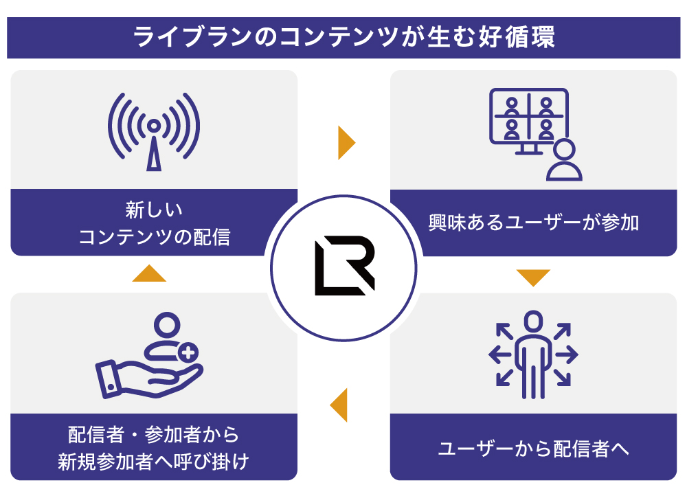 「ライブラン」内のチャンネル数が増えることでセッションや配信者のファンも増えていき、「ライブラン」のユーザー数拡大に繋げていく計画です。