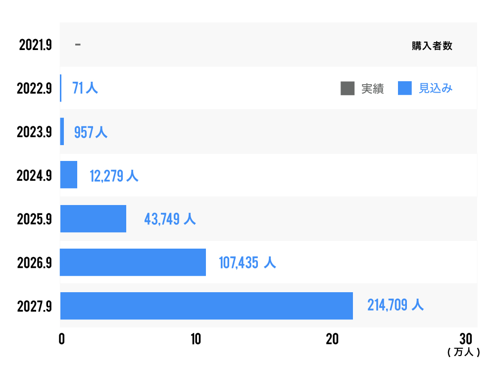 下記のKPIの推移については、事業計画書(売上高等推移予想)の内容を反映しております。なお、KPIの推移については、発行者の予測であり、必ずしも保証されるものではありません。 事業計画書につきましては契約締結前交付書面の別紙1-1・別紙1-2をご確認ください。