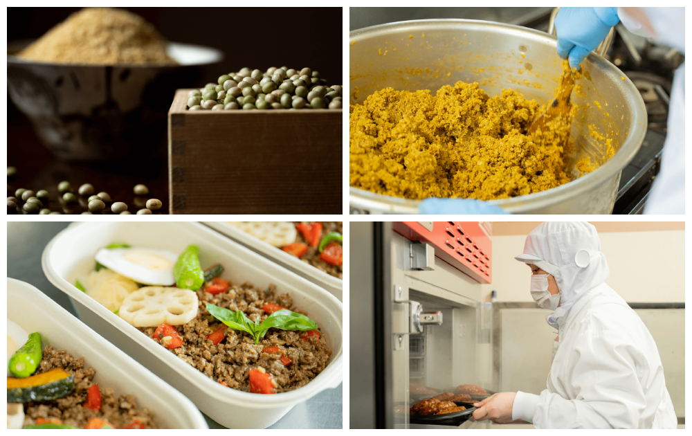 弊社は、穀物の自給率向上を目指し発酵技術を活用した「プレバイオティクス大豆ミート」の確立を目指し、現在テスト加工を行っています。まずは、全国の耕作放棄地を利活用して大豆栽培から始め、その後大豆ミートの製造ラインを立ち上げ商品化し、ビジネスパートナーの農業生産法人との協業を活性化させることで国内の学校給食、病院や老人ホームなどに納品していく計画です。