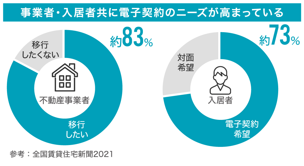 ãŸããäžåç£æ¥è ã®ãã¡ãé»åå¥çŽã«ç§»è¡ãããäžåç£äºæ¥è ã¯çŽ83ïŒ ãããã«ãå ¥å± è ã®çŽ73ïŒ ã察é¢å¥çŽããé»åå¥çŽãæãã§ãããšããçµæãåºãŠãããäºæ¥è ã»æ¶è²»è ãšãã«äžåç£ååŒã®é»åå¥çŽãžã®ããŒãºã¯é«ããªã£ãŠããŸãïŒåºå žïŒå šåœè³è²žäœå® æ°èïŒã