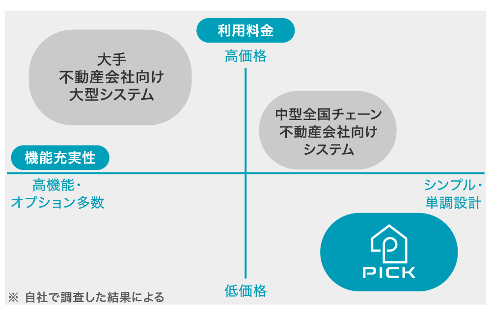 ç«¶åä»ç€Ÿã¯å°å ¥è²»çšãé«é¡ã§ãé»åæŒå°ã·ã¹ãã ã倿³šããŠããå Žåãå€ããåŸé課éé¡ãé«ãèšå®ãããŠããäžããPICKFORMãã¯èªç€Ÿéçºã®é»åæŒå°ã·ã¹ãã ã§éçšã³ã¹ããæããããšã§ãæ¥çã®äžã§ãææãã®äœäŸ¡æ Œãå®çŸããŠããŸãïŒèªç€Ÿèª¿ã¹ã«ããïŒã