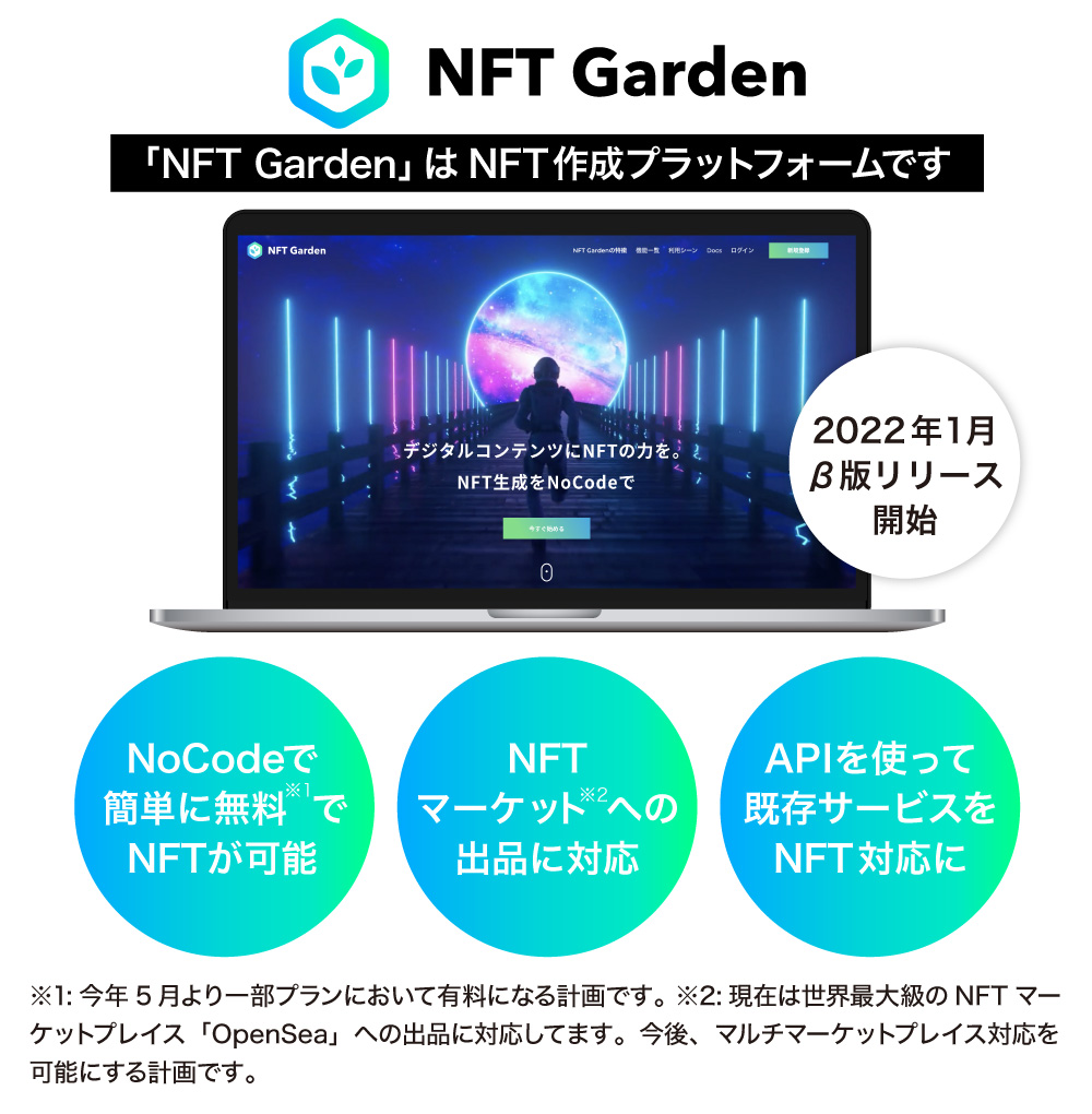 ãNFT Gardenãã¯ãä»å¹Ž1æããβçãšããŠç¡æã§æäŸããŠããŸããä»å¹Ž5æãç®æšã«ã¯ãªãšã€ã¿ãŒããã³äŒæ¥ã®éçºè åãã«ãµãã¹ã¯ãªãã·ã§ã³ã¢ãã«ã«ãŠããã¿ã€ãºãéå§ããããšãèšç»ããŠããŸãã