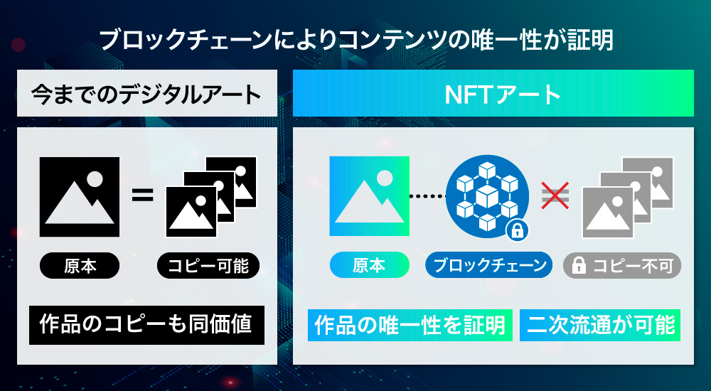 NFTãšã¯ãèžè¡ãç»åãæ¥œæ²ãåç»ãªã©å¯äžç¡äºã®äŸ¡å€ãæã£ã次äžä»£ã®ããžã¿ã«è³ç£ã®ããšã§ããã®äŸ¡å€ã¯ãããã¯ãã§ãŒã³æè¡ã«ãã£ãŠæ ä¿ããããããäžã§ååŒãããŠããŸãã