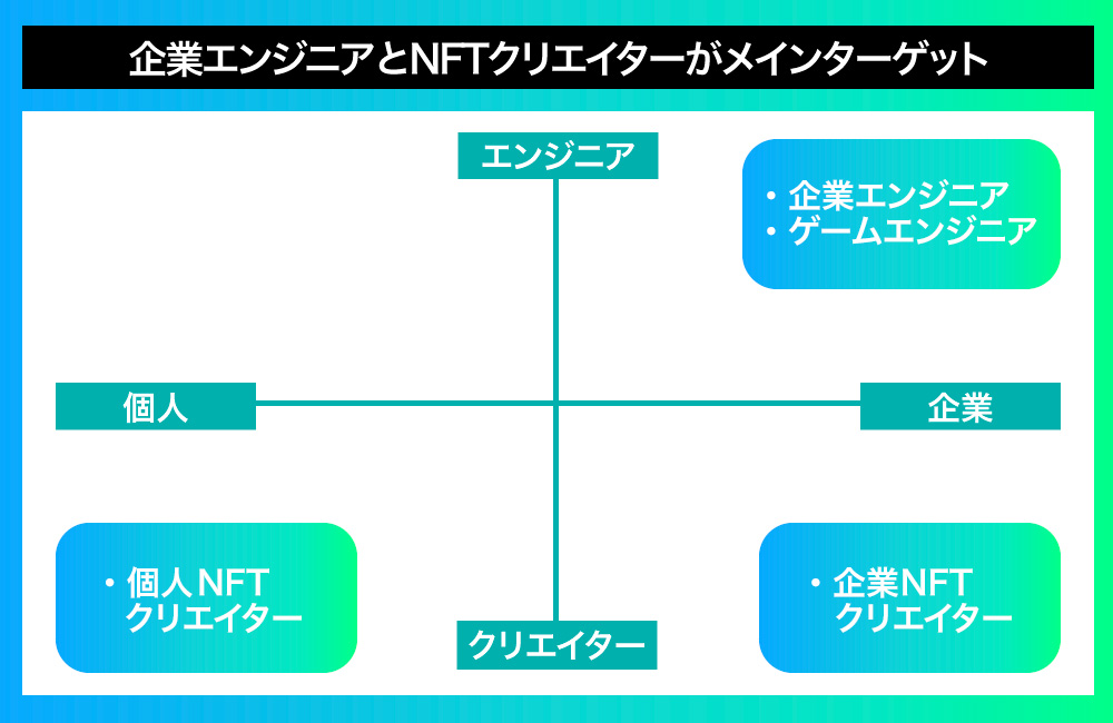 ãNFT Gardenãã®äž»ãªã¿ãŒã²ããã¯ãäŒæ¥åšç±ã®éçºè ãšã¯ãªãšã€ã¿ãŒã§ããã²ãŒã æ¥çãªã©ã§ã¯ãã£ã³ããŒã³çšéãšããŠæ°åäžåäœã®å€§éã®NFTé åžã®æµãããã§ã«çãŸããŠãããNFTäœæã®å¹çåãæ±ããŠããå®åè ããŠãŒã¶ãŒãšããŠç²åŸããŠãããŸãã