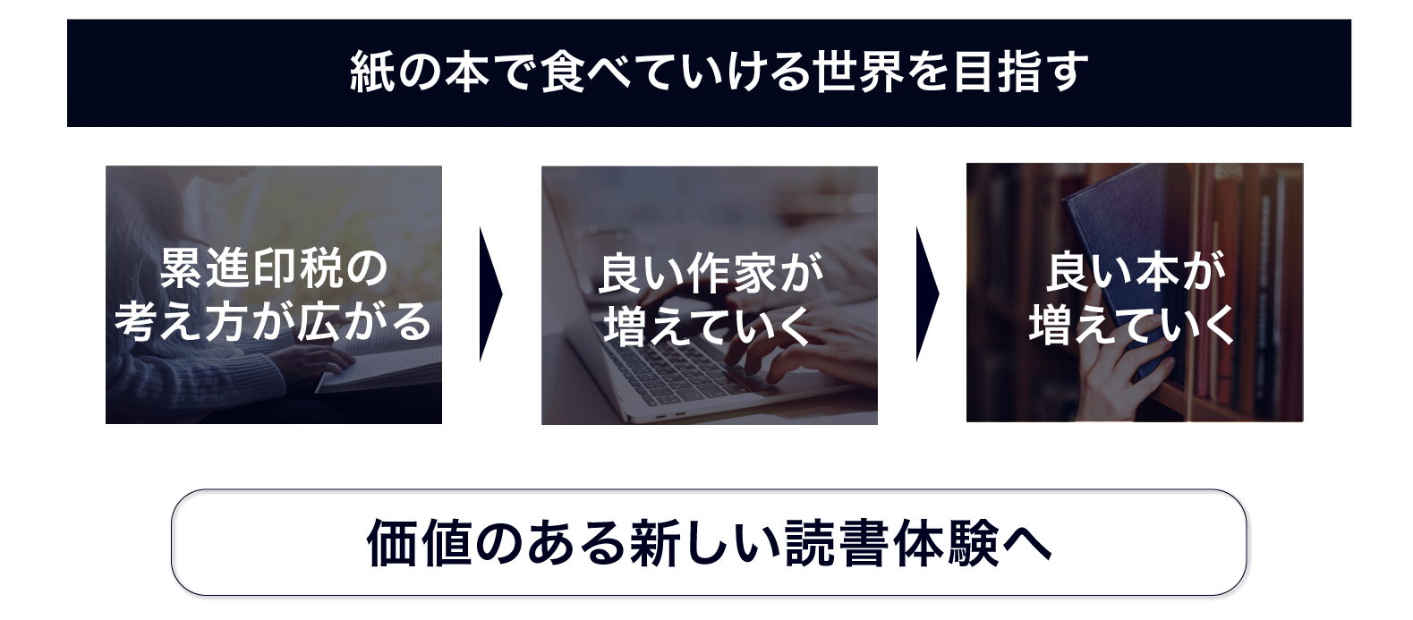 累進印税(ダイナックプライシング)という出版業界では例を見ない取り組みに賛同してくださる方、「読み手と書き手のフェアな関係を築く」というコンセプトに共感してくださる方々とともに、良質なコンテンツとしての書籍を世に送り出したい。