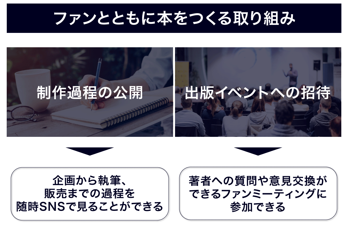 企画の段階では、読んでおもしろかった本や読みたい本について、ホームページや株主懇親会の中で意見を伺いますし、制作状況は随時SNSなどで公開していきます。本が出版された際は、著者への質問・意見交換ができる出版ミーティングやサイン会といった販促イベントも大都市圏を中心に行うことを計画しています。