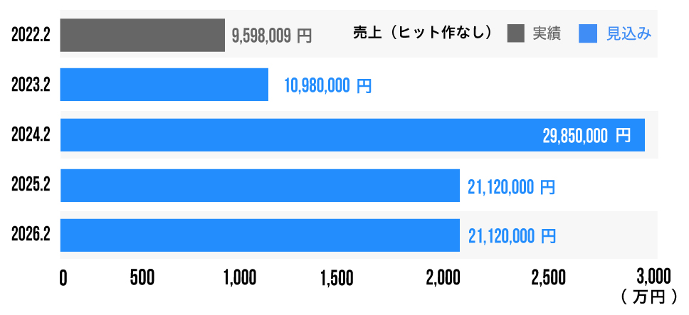 上記はヒット作が出た場合の売上見込みですが、出版事業は確実にヒットが出るといったものではないため、ヒットが出なかった場合の売上見込みも下記に掲載します。
