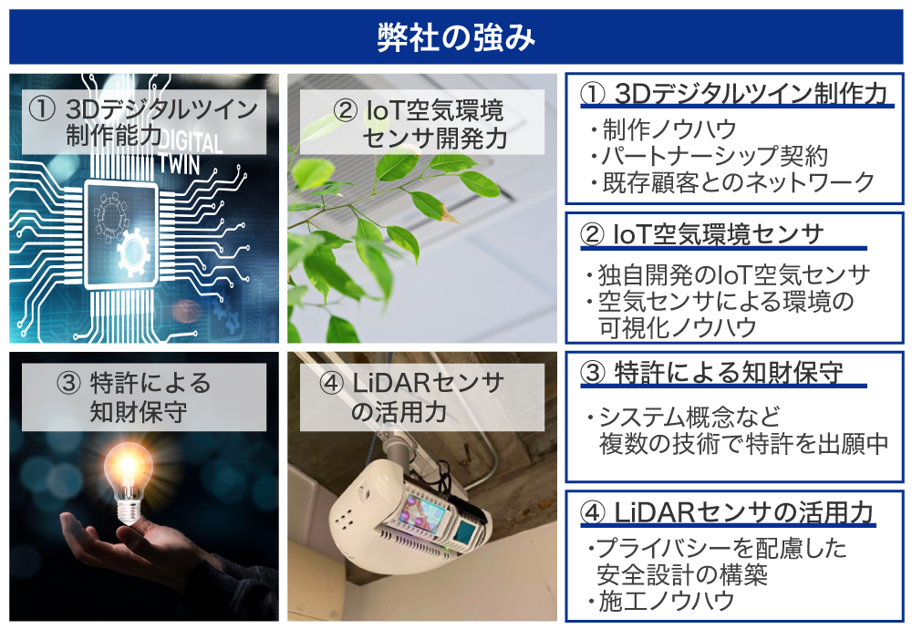 ããã§åŒç€Ÿã¯ããããŸã§è¡ãªã£ãŠãã3Dããžã¿ã«ãã€ã³ã®æè¡ãå¿çšãããã©ã€ãã·ãŒã«é æ ®ãã€ã€ã人ã ã®è¡åã空æ°ç°å¢ãã¢ãã¿ãªã³ã°ããæ¬¡äžä»£IoTãœãªã¥ãŒã·ã§ã³ã·ã¹ãã ã®éçºã«ä¹ãåºããŸããã