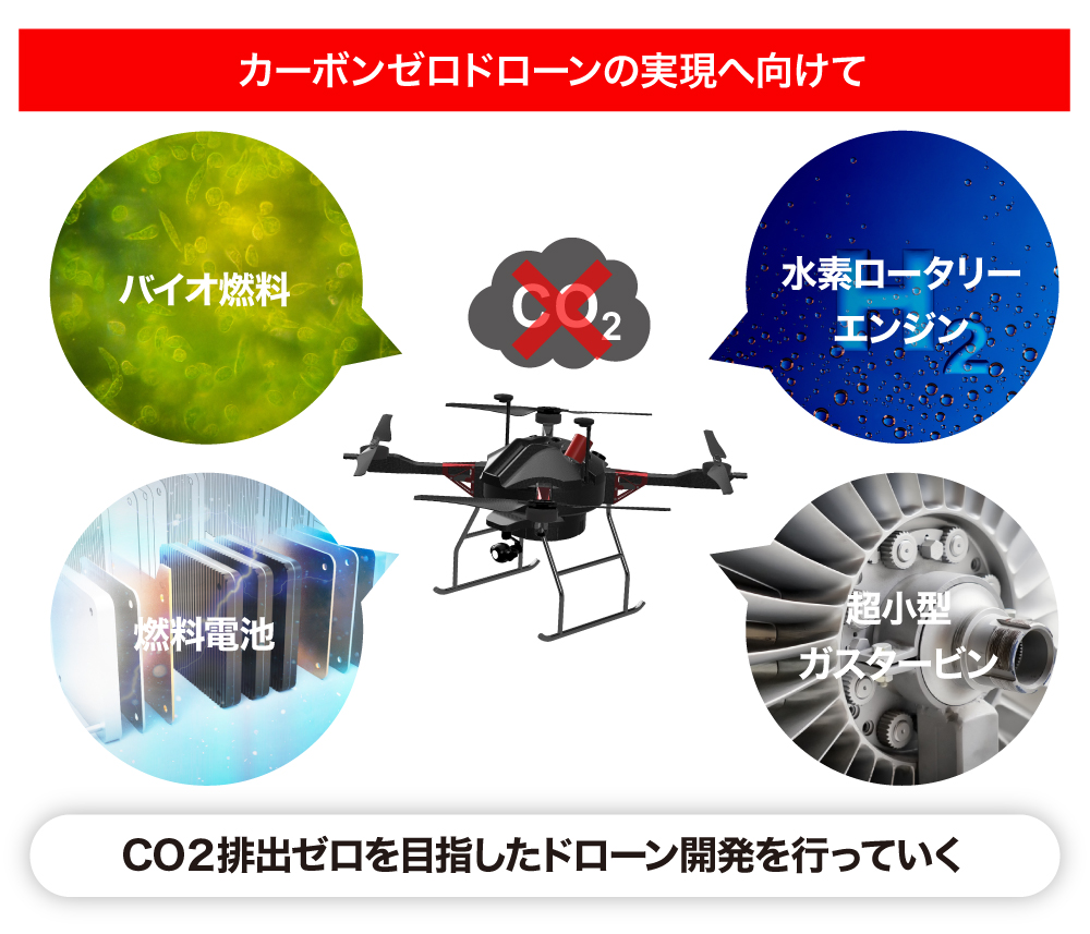 前述の通り、昨年3月にはバイオ関連の上場企業とともにバイオ燃料を使用した実証実験も行われました。このように、エコな燃料への対応を進めることで、環境にやさしいカーボンゼロドローンの実現を目指します。