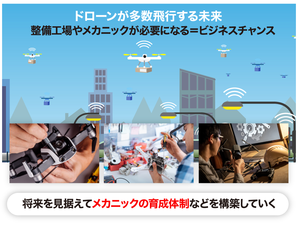 その際、必要になってくるのは、自動車の整備工のようなメカニックの技術です。弊社はここにビジネスチャンスがあると捉え、メカニックの育成体制構築へ向けた構想を進めています。
